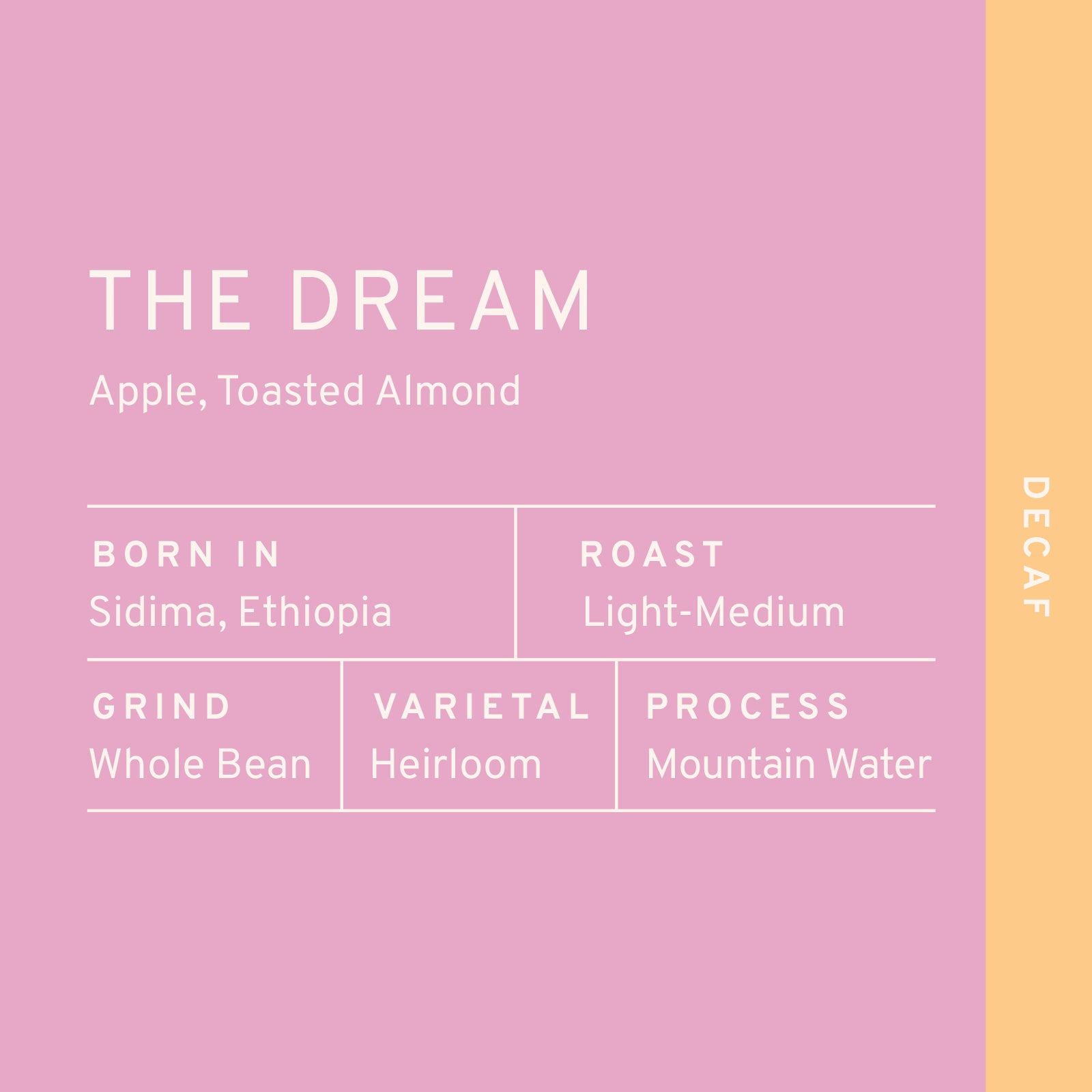 Ah Decaf! Our Dream speaks volumes. Clear notes of crisp apple, and toasted almond come through without the caffeine. It's like a cozy hug from your favorite mug, a comforting companion for late-night musings or a gentle sunrise salute without the need to conquer the world before breakfast. It's decaf done right, keeping the spirit of the bean intact.